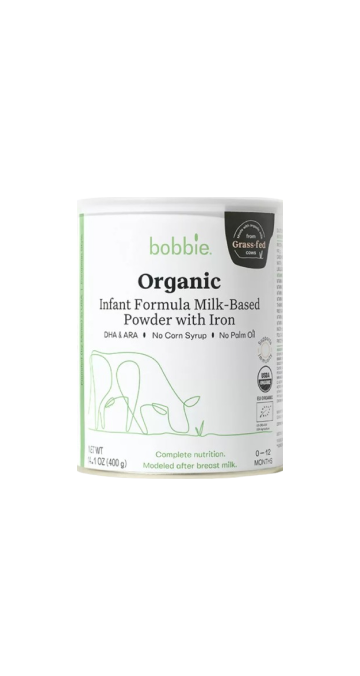 Formulated by moms for moms, Bobbie is an organic, non-GMO, and clean label formula. It originated from a group of mothers seeking a reliable formula to complement breastfeeding.