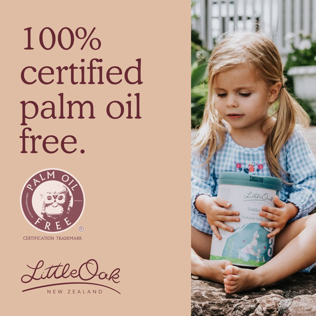 At LittleOak, they are proud to be the first formula in the world to be certified 100% palm oil free by the Palm Oil Free Certification Accreditation Programme (POFCAP).