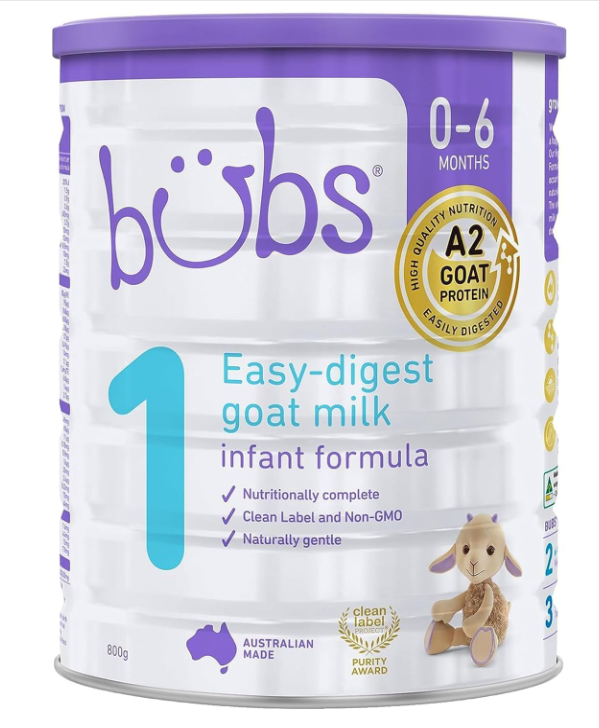 - GOODNESS FROM THE FARM: Bubs Easy-digest goat milk Infant Formula Stage 1 is suitable for sensitive tummies, securely formulated non-GMO, with no artificial colors, flavors, or preservatives, and selected for Clean Label Purity Award
