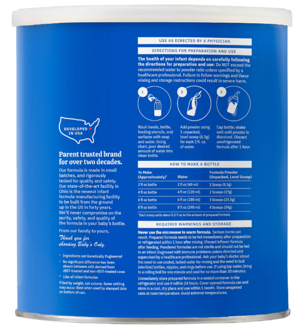 - GIVE YOUR INFANT A CLEAN START: Quality, organic ingredients are a must when it comes to your infants. Our classic milk-based infant formula doesn’t contain corn syrup, palm oil, GMOs, artificial colors, sweeteners or growth hormones.